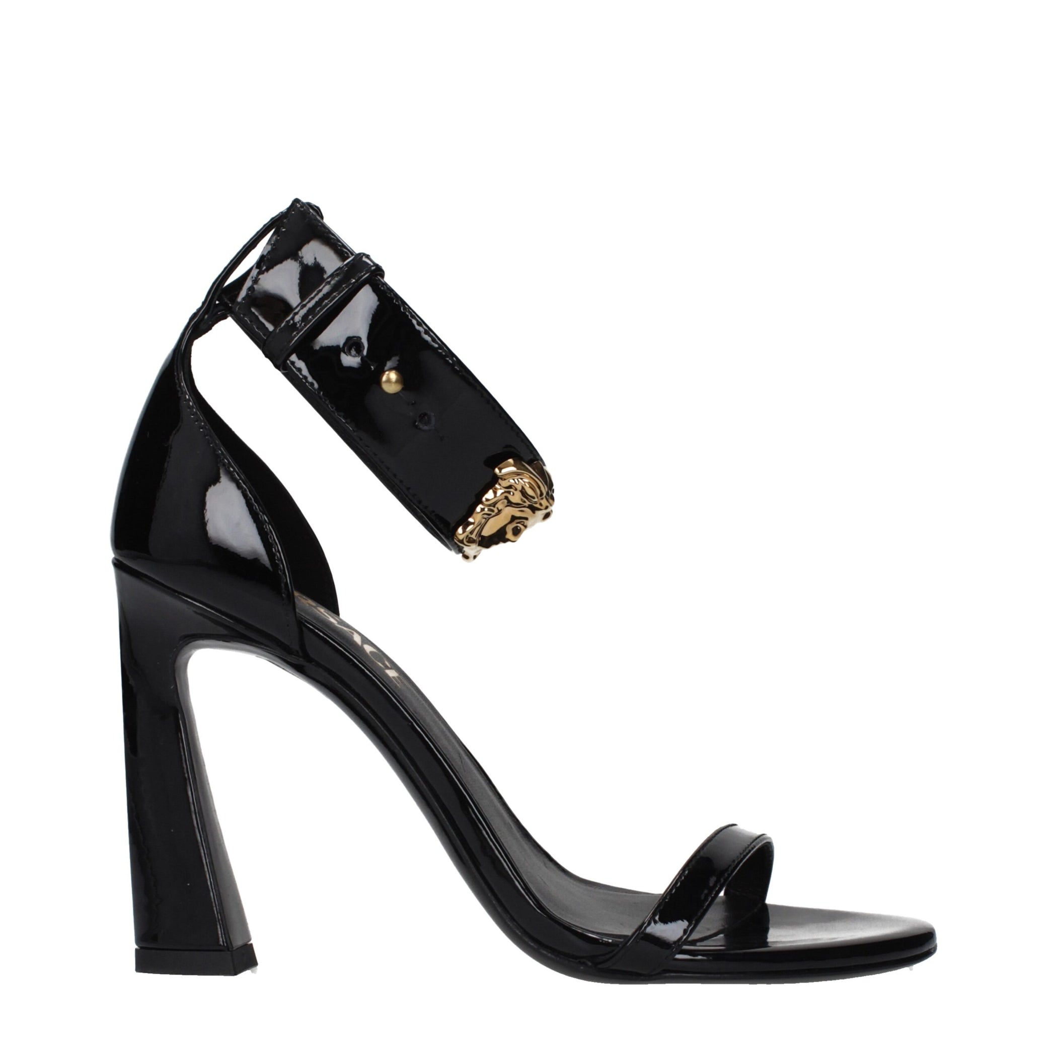 The product with MPN 10185341A081761B00V and code F85531 patent leather in black is a sandals designed by Versace.